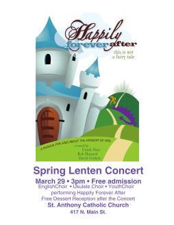 St. Anthony's Catholic Church, 417 N. Main St. Davenport, Iowa will be hosting a Free Lenten/Spring Concert. It will feature the English Choir singing selections ranging from Bach and Handel to contemporary . The Ukulele Band will be performing Religious and non Religious selections and will be hosting a sing a long! The Youth Choir will be performing the musical " Happily Forever After!" The tunes are so catchy you'll be tempted to join in the singing and the dancing!! A free dessert reception will follow! Everyone is welcome!