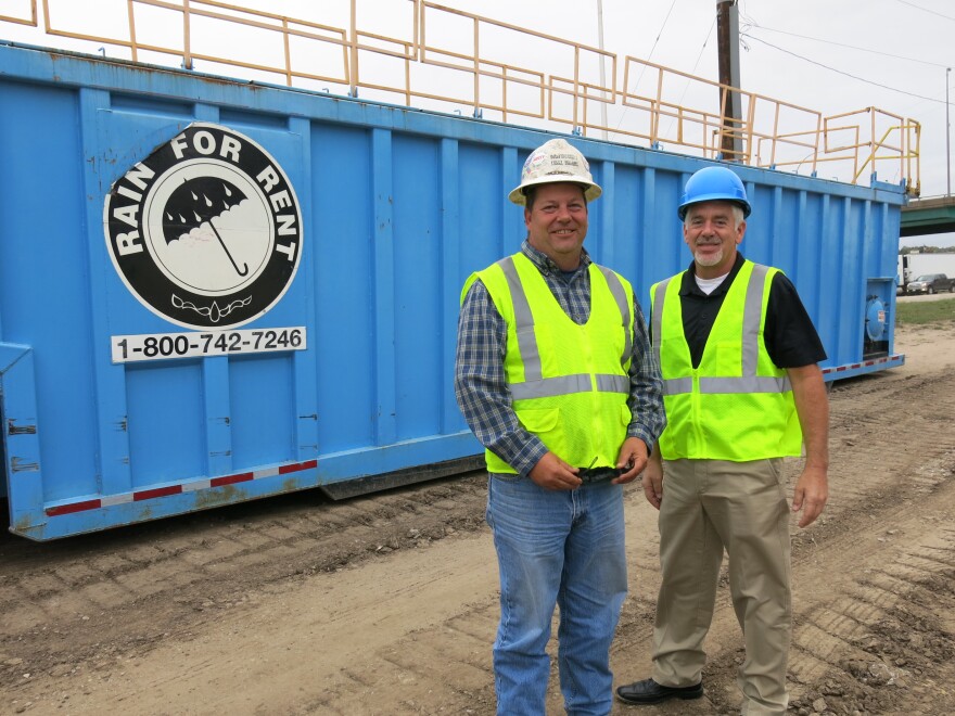 Moline Public Works Director, JD Schulte, says first, the water will be pumped into four, large, blue, tanks to remove all the sediment. Drivers can see them sitting next to the Spiegel building along River Drive, just east of I-74.